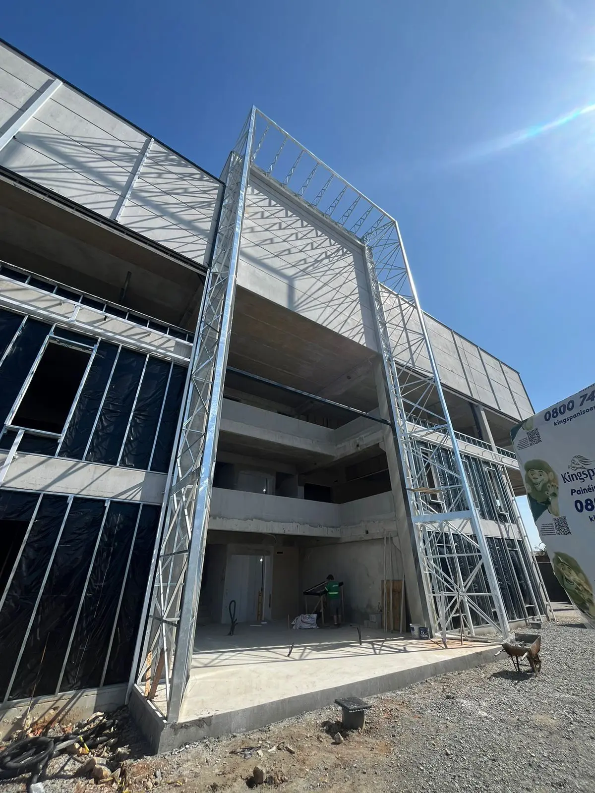 A solução foi dimensionada para integração com a estrutura existente do prédio, permitindo cobertura da área de entrada e maior conforto para circulação de pessoas, mantendo padrão estrutural adequado para aplicações na construção civil.