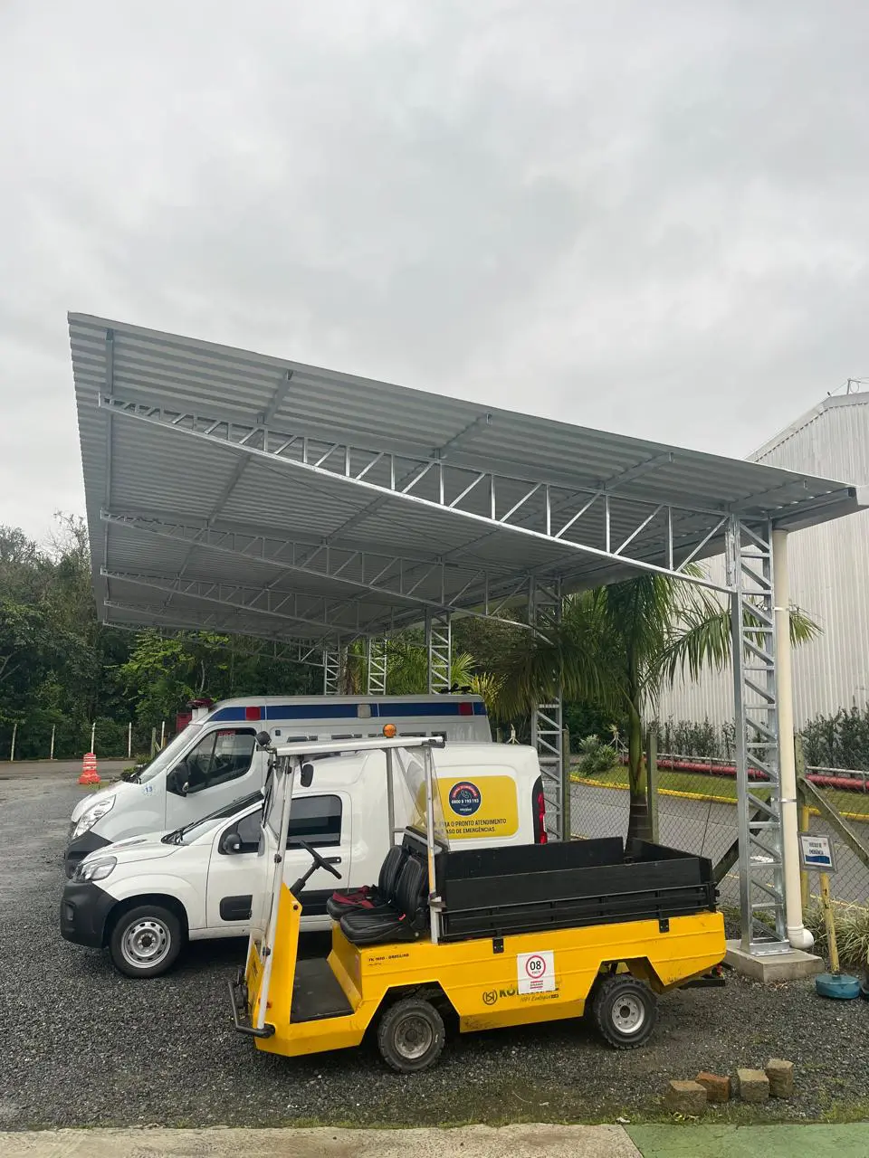 Cobertura metálica para estacionamento da Whirlpool, desenvolvida em estrutura de aço projetada para garantir resistência, durabilidade e proteção aos veículos. A estrutura recebeu acabamento galvanizado a fogo, proporcionando alta proteção contra corrosão e maior vida útil, mesmo em ambientes externos. A solução foi projetada para atender às necessidades do cliente com robustez, segurança e baixa necessidade de manutenção.